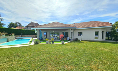 Domarin — Villa contemporaine avec vue panoramique Sur les hauteurs paisibles de Domarin, dans un secteur très recherché, cette magnifique villa de plain-pied construite en 2021 vous séduira par son ambiance chaleureuse, intime et raffinée. Le terrain paysagé de 815 m² est accessible par un escalier intégré au jardin, permettant de profiter pleinement de l'extérieur. La maison, en forme de U, entoure un patio intimiste de 50 m², parfaitement à l'abri des regards, qui constitue un véritable espace de vie extérieur. Il est idéal pour vos repas en plein air, vos moments de détente ou vos soirées entre amis, tout en profitant d'une atmosphère privée et tranquille. La pièce de vie, spacieuse et baignée de lumière, s'ouvre directement sur l'extérieur et offre un panorama dégagé à couper le souffle. La cuisine moderne, entièrement équipée avec l'électroménager qui reste, s'intègre harmonieusement dans cet espace, favorisant la convivialité et le confort au quotidien. La villa dispose de quatre chambres, dont une suite parentale pensée pour le confort absolu avec sa salle d'eau privative et son dressing. Chaque chambre bénéficie d'une belle luminosité et d'un accès vers l'extérieur, renforçant l'espace et la sérénité. Une salle de bain supplémentaire et une buanderie fonctionnelle complètent l'intérieur de la maison. Le garage, généreusement dimensionné, facilite le stationnement et le rangement tout en s'intégrant parfaitement à l'architecture de la maison. Le confort est assuré grâce à un chauffage au sol par pompe à chaleur, un ballon thermodynamique et un adoucisseur d'eau, garantissant une atmosphère agréable et économique en toute saison. L'emplacement de cette villa est particulièrement pratique. Elle se situe à seulement 10 minutes en voiture de la gare de Bourgoin-Jallieu, à proximité des écoles et des commerces, et bénéficie d'un accès rapide aux axes autoroutiers pour rejoindre Lyon ou Grenoble. Cette maison est l'une des plus belles du secteur, alliant élégance, modernité et confort dans un cadre calme et privilégié. Chaque détail a été pensé pour offrir un lieu de vie exceptionnel où il ne vous restera qu'à poser vos valises et profiter pleinement de l'environnement et de la vue. Les informations sur les risques auxquels ce bien est exposé sont disponibles sur le site Géorisques : Prix de vente : 578 000 euros Honoraires charge vendeur Contactez votre conseiller SAFTI : Turgay ARKAC - EI - Agent commercial immatriculé au RSAC de VIENNE sous le numéro 480 976 232