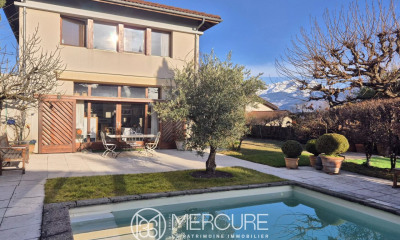SAINT ISMIER, quartier résidentiel privilégié au calme et à proximité du centre village. Villa contemporaine dessinée par Michel JANIK, construite en 2014, sur un terrain avec vue panoramique sur la chaine de Belledonne, d'une surface de 1370 m2. Pièce de vie de 67 m2, cuisine équipée, buanderie, salle de jeux, cellier, cave à vins, 4 chambres, 3 salles de bains, des rangements et dressing. En complément des 280 m2 de surface habitables, un garage de 140 m2 et d'autres annexes pour arriver a une surface au sol cumulée de 434 m2. Piscine, terrasse bioclimatique, cuisine d'été viennent parfaire les équipements haut de gamme de ce bien d'exception. Honoraires à la charge du vendeur. Classe énergie C, Classe climat A Montant estimé des dépenses annuelles d'énergie pour un usage standard : entre 1790.00 euros et 2480.00 euros sur les années 2021, 2022 et 2023 (abonnements compris). Les informations sur les risques auxquels ce bien est exposé sont disponibles sur le site Géorisques : georisques.gouv.fr.