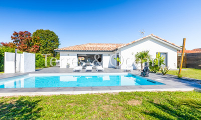 Située proche de Peyrehorade, à 35 minutes de l’aéroport de Biarritz et 40 minutes des plages réputées d’Hossegor, magnifique ferme landaise d’environ 400 m², entièrement restaurée avec goût en 2021. Propriété offrant une vue exceptionnelle sur la chaîne majestueuse des Pyrénées qui se compose de 4 chambres, une suite parentale raffinée agrémentée d’un grand balcon d’où l’on peut admirer les chevaux. 4 salles d’eau, un bureau élégant ainsi qu’une salle de billard invitant à des moments conviviaux. Des espaces généreux et lumineux qui associe des matériaux nobles et authentiques à une décoration raffinée pour une vie de qualité. Le confort est assuré par le chauffage au gaz, une cheminée en rez-de-chaussée ainsi qu’un poêle à bois à l’étage pour plus de charme et de convivialité. Les atouts de cette demeure d’exception ne manquent pas : 3 hectares de terrain, une peña conviviale pour recevoir, et enfin un ponton privé, privilège rare pour amarrer un bateau.