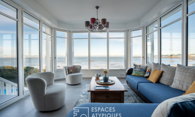 EXCLUSIVITÉ - PRESTIGE ATLANTIQUE. PRÉFAILLES. Avec un emplacement d'exception sur la prestigieuse Corniche de la Source et à proximité immédiate de la plage de Margaret, cette villa d'architecte contemporaine des années 2005, incarne l'alliance parfaite entre élégance et confort moderne, déployée sur deux niveaux et conçue avec un raffinement absolu, elle dispose d'une surface habitable de 160 m². Chaque détail a été pensé pour offrir des prestations haut de gamme : climatisation intégrée, chauffage au sol pour un confort optimal en toutes saisons, et un système d'aspiration centralisée pour une praticité au quotidien. Un hall d'entrée vient desservir un bel espace de vie avec salon et salle à manger agrémenté d'une cuisine aménagée équipée prémium, le tout à la vue imprenable de par ses larges baies vitrées et en accès direct à une vaste terrasse prolongée de son jardin paysager, les frontières entre l'intérieur et l'extérieur s'effacent pour offrir une qualité de vie des plus idéales. L'espace nuit se compose de trois chambres avec placards dont une chambre parentale ouverte sur la grande terrasse. Une salle d'eau et une arrière cuisine/buanderie complètent ce rez-de-jardin. Au niveau supérieur, un palier vient distribuer deux chambres équipées de placards dont une ouvrant sur une spacieuse terrasse, ainsi qu'une salle d'eau commune. Un espace détente avec cheminée prolongé de sa vaste terrasse sublimé du panorama océan vient parfaire l'étage. Édifiée sur une parcelle close et joliment arborée de 1440m2, un grand garage avec sa bagagerie et un double carport donnent une touche finale à ce bien d'exception. Magnifique villa à l'abri des regards conjuguant à merveille la vie famille et la convivialité dans un cadre idyllique et unique. Les informations sur les risques auxquels ce bien est exposé sont disponibles sur le site Géorisques “Les informations sur les risques auxquels ce bien est exposé sont disponibles sur le site Géorisques ”. Pour plus de renseignements ou pour organiser une visite privée, contactez-nous sans plus attendre, PRESTIGE ATLANTIQUE Prix de vente 899 000€ FAI les honoraires sont à la charge du vendeur (RCS. Saint- Nazaire 897 587 946).