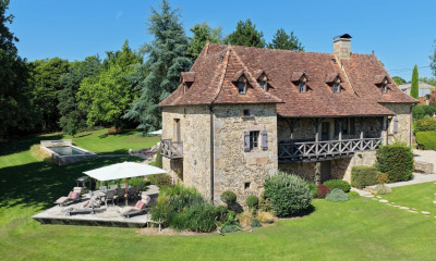 Ref --052025-278 Situé dans un paisible village historique de campagne à une courte distance de la charmante ville de St Céré, en Dordogne, cet élégant manoir de 205 m² offre une combinaison rare d'espace, d'intimité et de vues panoramiques sur la campagne vallonnée, avec une vue imprenable sur deux châteaux historiques et le parcours de golf voisin. Entouré de plus de 6 000 m² de terrain et sécurisé par un portail électrique, c'est un véritable paradis pour les amoureux de la nature, où le chant des oiseaux devient le doux rythme du quotidien. Construit en 2009 selon les spécifications les plus élevées et de conception individuelle, le manoir se dresse fièrement sur environ 1,5 acres de terrain isolé. L'espace de vie décloisonné est lumineux, spacieux et soigneusement conçu, combinant les espaces salon, salle à manger et cuisine en un seul espace convivial et homogène. Doté d'un sol en pierre avec climatisation au sol, de plafonds aux poutres apparentes en chêne et d'une superbe cheminée centrale, il offre confort et élégance toute l'année. De grandes portes coulissantes s'ouvrent sur une terrasse avec vue sur le jardin, remplissant l'espace de lumière naturelle et de vues depuis chaque fenêtre. L'aménagement se poursuit dans une autre pièce de jour, idéale comme espace de vie supplémentaire ou chambre au rez-de-chaussée, complétée par une salle de bains bien équipée et un dressing. Depuis le couloir central, des portes doubles mènent à une vaste terrasse ensoleillée, parfaite pour les repas en plein air et la vie intérieure-extérieure harmonieuse. L'étage comprend deux chambres aux dimensions généreuses, chacune avec sa propre salle de bains, une baignoire jacuzzi dans la salle de bains principale. Un palier lumineux et ouvert actuellement utilisé comme bureau, un refuge paisible pour travailler à domicile ou réfléchir tranquillement. Les jardins magnifiquement entretenus constituent un sanctuaire naturel, avec suffisamment d'espace pour l'installation de panneaux solaires. Un garage double, un parking supplémentaire pour 5 à 6 véhicules et un accès direct aux sentiers pédestres environnants ajoutent à l'attrait de la propriété. Bénéficiant d'excellentes connexions avec les autoroutes et un aéroport à proximité, cette maison exceptionnelle est parfaitement adaptée à ceux qui recherchent une résidence permanente ou une escapade raffinée à la campagne. Des plans sont en place pour une extension de bon goût sur deux étages avec une deuxième cheminée, et les raccordements nécessaires à l'électricité et à l'eau sont déjà en place. Le terrain offre également un potentiel pour l'installation de panneaux solaires ou une deuxième habitation. Des informations sur les risques pesant sur ce bien sont disponibles sur le site Internet des Géorisques : georisques.gouv.fr.
