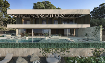 Le développement de la Villa Elysium incarne modernité et accueil, avec un design simple et sophistiqué qui s'harmonise harmonieusement avec l'environnement naturel. La lumière emplit les espaces intérieurs, établissant une connexion continue entre l'intérieur et l'extérieur, transformant la villa en un havre de tranquillité, où élégance et confort coexistent en parfaite harmonie. La Villa Elysium est un joyau architectural inégalé, qui allie design avant-gardiste, confort, exclusivité et élégance. Sa distribution longitudinale permet à toutes les pièces de profiter d'une vue panoramique sur les environs et d'une abondante lumière naturelle, avec des lignes simples qui se fondent harmonieusement avec le paysage environnant. Cette magnifique résidence de trois étages allie fonctionnalité et esthétique, offrant des espaces exceptionnels pour un mode de vie de luxe. Au sous-sol, vous trouverez un grand parking pouvant accueillir six véhicules, accessible par une rampe. De plus, cet étage abrite un centre de bien-être complet comprenant un sauna, une salle de sport donnant sur une cour intérieure paisible, un bain turc, une salle de massage, des toilettes et un vestiaire. Le rez-de-chaussée est mis en valeur par un vaste espace double qui relie le salon intérieur à la terrasse, à la piscine et au jardin. Ce niveau comprend un grand espace de vie central entre la cuisine ouverte et la salle à manger formelle. Trois chambres avec salle de bain attenante sont réparties à cet étage ; deux d'entre eux possèdent une pergola semi-privée, et le troisième comprend un atelier. De plus, à l'arrière, on trouve une cave à vin au design sculptural, une salle TV, une buanderie, une cuisine de service et des toilettes. Au premier étage, il y a quatre chambres doubles, chacune équipée de sa propre salle de bain complète, et trois d'entre elles avec accès à un balcon. À cet étage se trouvent également l'entrée principale, une salle douillette et une zone pergola extérieure pour le stationnement de deux véhicules. La nature enveloppe toute la maison depuis l'entrée piétonne, qui traverse un petit jardin d'accès. Le jardin avant, avec ses teintes vertes, ses grands arbres et ses fleurs délicates et magnifiques, abrite une grande piscine privée étincelante où l'on peut se rafraîchir et profiter de l'eau. La végétation environnante encadre la vue, mettant en valeur la beauté des environs. Les éléments végétaux dirigent le regard vers des points d'intérêt spécifiques, créant une expérience visuelle dynamique et exotique. La combinaison des vivaces et des feuillus ajoute une palette en constante évolution, animant le paysage de couleurs vives et saisonnières. Le projet Villa Elysium incarne une architecture contemporaine et minimaliste, où les lignes raffinées et élégantes créent une atmosphère de sérénité et de sophistication. Les tons chauds se fondent harmonieusement avec l'environnement, reflétant l'essence de la nature dans chaque détail. Avec une vue panoramique sur l'horizon marin, la maison baigne dans la lumière du lever du soleil et la douce lueur du coucher de soleil, insufflant à l'espace un sentiment de paix et d'équilibre. La Villa Elysium est plus qu'une résidence ; C'est un sanctuaire où l'esprit trouve le repos, où chaque jour commence et se termine en profonde connexion avec la beauté naturelle environnante. Cette maison luxueuse, située au pied de la montagne et face à la mer, redéfinit le concept de maison moderne..
