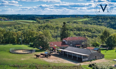 Dans une vallée protégée du Lot-et-Garonne, cette propriété bénéficie d'un calme absolu, à l'écart de toute nuisance. Les prairies, les bois et les vues dégagées composent un cadre naturel exceptionnel. Le domaine est entièrement clôturé. Proche de Tournon-d'Agenais, Montayral et ses commerces à 15 mns, proche du Lot et de la Dordogne. -Maison en pierre, parfaitement entretenue, offrant : Vaste terrasse couverte, grande cuisine équipée, salle à manger / salon avec bibliothèque, second salon, mezzanine, deux chambres et salle d'eau. Dans l'aile opposée avec double accès par un bolet quercinois, un salon et une chambre disposant de sa salle d'eau privative ainsi que d'un dressing. Mezzanine avec chambre d'appoint. -Les dépendances et les installations Le domaine possède de nombreux bâtiments annexes, pensés pour une utilisation polyvalente : Une grange aménagée avec atelier et 5 box à chevaux Une seconde grange dédiée au stockage, avec cuisine d'été et salle d'eau Un chalet bois équipé en eau et électricité Un chalet indépendant de 20 m², climatisé, composé de deux pièces et entouré de clôtures -Les extérieurs Le terrain couvre plus de 7 hectares de prairies clôturées, parfaitement adaptés à l'élevage ou aux activités équestres. Une piscine au sel de 6 × 12 m s'intègre parfaitement dans l'environnement paysager, à proximité du jardin, du potager et de la serre. -Le confort moderne Chauffage par pompe à chaleur, poêles à bois et granulés Triple vitrage Panneaux photovoltaïques (9 kW) Portail automatique Grâce à son entretien soigné, à son environnement préservé et à la qualité de ses équipements, cette propriété est adaptée aussi bien à un projet équestre qu'à un accueil touristique ou à une vie familiale paisible. Les honoraires sont à la charge du vendeur. Les informations sur les risques auxquels ce bien est exposé sont disponibles sur le site Géorisques : georisques. gouv. fr. Réseau Immobilier CAPIFRANCE - Votre agent commercial (RSAC N°815 090 618 - Greffe de AGEN) Stéphane RIGAL Entrepreneur Individuel Réf.932940