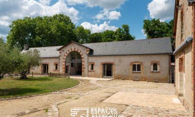 A 25min d'Angers, propriété avec piscine contenant une résidence principale de 220m², une salle des chasseurs de 77m² avec dortoir au-dessus et un studio indépendant de 41m², des dépendances et près de 5ha de terres libres. Possibilité d'acquérir d'avantage de terres. La résidence principale comprend une entrée avec coin bureau et départ d'escalier, un débarras, un dégagement qui dessert un WC et une suite parentale avec salle d'eau et dressing, un cuisine aménagée et équipée, un salon - salle à manger avec cheminée ouverte et insert et départ d'escalier. A l'étage, desservi par le 1er escalier, un palier dessert une salle de bains avec baignoire et douche, deux chambres dont une avec WC privatif et un débarras avec un escalier qui mène au grenier. le second escalier dessert un palier, un dégagement, un WC, une salle de bains avec baignoire, douche et bidet puis une autre chambre avec dressing et WC privatif. Maison branché sur le puits de la propriété avec possibilité de la passer sur l'eau de ville. Divers bâtiments constituent cette propriété: chaufferie, studio de 41m² indépendant, dortoir, salle de jeu, local piscine et hangars agricoles dont une stabulation, un atelier et double garage. 898 000,90 euros. 859 331 euros + Honoraires de négo. : 38 669,90 euros (soit 4,50% à la charge de l'acquéreur)