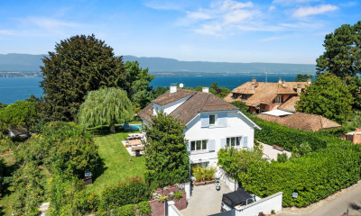 Née d'un dialogue inspiré entre l'architecture, la lumière et la nature, cette propriété rare séduit par son style contemporain épuré et son cadre verdoyant. Édifiée sur deux parcelles richement arborées regroupant plus de 6'400 m² avec une superbe piscine extérieure chauffée ainsi qu'une une forêt-Jardin naturelle, cette sublime propriété conjugue confort, esthétique et opportunité d'investissement. Construite en 1961, la villa a bénéficié de rénovations suivies entre 1985 et 1995, puis de transformations majeures en 2003 - 2004, 2005, 2012, et enfin en 2019 avec l'agrandissement d'une magnifique cuisine contemporaine de 30 m² et l'installation de panneaux photovoltaïques. La maison propose plus de 300 m² répartis sur deux niveaux. Les 7,5 pièces qu'elle propose, dont 4 chambres et 4 salles de bains, se distinguent par leurs volumes spacieux et leur luminosité exceptionnelle grâce à de larges baies vitrées en triple vitrage. Ses Atouts sont en priorité : - Espaces intérieurs généreux avec hauteur sous plafond de plus de 3 m - Espace Welness avec sauna et jacuzzi et salle de bain complète - Très belle vue dégagée sur le lac et les Alpes, atmosphère de calme et de sérénité - Parc arboré totalement clôturé et forêt d'agrément offrant une intimité totale - Piscine en mosaïque, chauffée par pompe à chaleur - Cuisine ultra contemporaine de 30 m² ouverte sur l'extérieur avec de larges baies vitrées. - Rampe d'accès depuis la cour extérieure à l'entrée de la maison facilitant l'accès des personnes à mobilité réduite - Garage double ainsi que de nombreuses places de parc extérieures Ses Equipements techniques : - Chauffage à gaz + panneaux photovoltaïques - Installation solaire pour l'eau chaude - Stores électriques & triples vitrages avec encadrement des fenêtres en métal - Isolation renforcée entre la dalle et la toiture des plafonds. Potentiel constructible : -Possibilité de construire 2 villas individuelles ou jumelles supplémentaires (250300 m² chacune, COS 1/8 ou 1/6) Localisation idéale : A proximité aisée du bus, du village avec tous les commerces, de la gare et de l'autoroute. Voir détails ci-après. Une brochure complète et détaillée est à disposition pour les personnes intéressées auprès de Madame Lucrèce Constantin au : +41 79 799 58 90