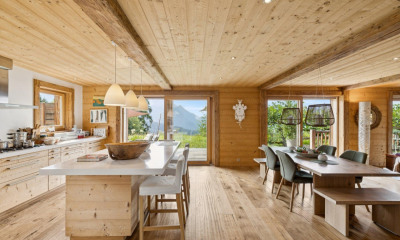 Avanthay Immobilier - Champéry Nichée le long du petit chemin calme et bucolique connu sous le nom de La Mourgue, cette magnifique propriété-datant du début des années 1900 (date exacte inconnue)-se dresse fièrement dans un cadre privilégié et serein. Anciennement détenu par une famille champérolaine, ce chalet de 16 pièces offre 460 m² habitables et a été rénové dans un subtil mélange de tradition et de design contemporain. La façade, conservée dans son état d'origine, confère au chalet l'apparence légèrement austère des demeures de montagne historiques. À l'intérieur, pourtant, le propriétaire a créé une atmosphère chaleureuse et accueillante, enrichie de tout le confort moderne. Un petit escalier en grès mène au rez-supérieur, où l'espace de vie s'ouvre sur une magnifique triple pièce : salon, salle à manger et cuisine contemporaine avec îlot - l'ensemble sublimé par des pierres naturelles d'époque et une superbe cheminée moderne. Cet espace généreux se prolonge sur une splendide terrasse de 45 m², véritable extension de la vie intérieure. La fontaine en pierre traditionnelle a été conservée et équipée d'eau chaude, offrant le plaisir unique d'un bain extérieur dans la fraîcheur hivernale. Des espaces techniques discrets bordent le hall d'entrée. Les espaces de nuit se répartissent sur les étages supérieurs. Deux chambres master avec salles de douche attenantes, un vaste bureau en mezzanine et une chambre orientée plein sud avec salle de douche séparée assurent confort et intimité aux résidents comme aux invités. Sous les combles du chalet se trouvent trois autres chambres : l'une avec salle de douche attenante et deux avec salles de bain séparées. Toutes les salles d'eau sont décorées de mosaïques Bisazza, apportant une touche de raffinement supplémentaire. Au rez-inférieur, une salle de sport, un hammam de six places et une salle de repos offrent l'endroit idéal pour se détendre après une journée sur les pistes. Des espaces de rangement intérieurs et extérieurs, une buanderie ainsi qu'un appartement indépendant de 3,5 pièces (non rénové) destiné au personnel complètent ce bien d'exception. La parcelle de 824 m² bénéficie d'une vue imprenable sur les massifs des Dents du Midi et des Dents Blanches, dans un environnement rural idyllique. En hiver, le télésiège du Grand Paradis est accessible en quelques minutes par le charmant sentier des Poussettes. Venez découvrir avec nous ces 1 350 m³ de pur bonheur - un lieu unique où se mêlent l'âme des vieux chalets et leur charme intemporel. Avanthay Real Estate - Champéry Nestled along the quiet, bucolic lane known as La Mourgue, this magnificent property-dating from the early 1900s (exact date unknown)-stands proudly in a privileged, serene setting. Formerly owned by a Champérolaine family, this 16-room chalet offers 460 m² of living space and has been renovated in a subtle blend of tradition and contemporary design. The façade, preserved in its original state, gives the chalet the slightly austere appearance of historic mountain homes. Inside, however, the owner has created a warm and welcoming atmosphere, enriched by every modern comfort. A small sandstone staircase leads up to the ground floor, where the living space opens onto a magnificent triple room: living room,..