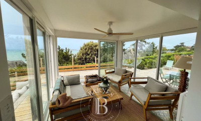 Cette maison contemporaine située en front de mer à Saint-Pair-Sur-Mer, offrant une vue imprenable sur les îles Chausey, Granville, Jullouville et la côte bretonne. Entièrement rénovée en 2005, cette maison moderne développe une surface habitable d'environ 220 m², implantée sur un terrain de 690 m² joliment arboré. Le rez-de-chaussée se compose d'un vaste espace de vie lumineux comprenant un grand salon-séjour, un petit salon avec cheminée, ainsi qu'une cuisine moderne, entièrement aménagée et équipée. Une chambre, un bureau, une salle d'eau, un espace de rangement généreux complètent ce niveau. A l'étage, vous découvrirez trois grandes chambres spacieuses et lumineuses, toutes ouvertes sur une vaste terrasse avec une vue mer panoramique. Ce niveau comprend également une salle de bains avec douche, une salle d'eau équipée d'un sauna électrique, ainsi qu'un grand dressing dans la suite parentale. Un double garage de 70 m² avec porte motorisée, un portail électrique avec interphone et une très belle cave viennent parfaire ce bien d'exception. Un bien rare à la vente, alliant confort, modernité et emplacement d'exception. Ce bien est proposée par Vincent Le Guern. Agent commercial EI " Les informations sur les risques auxquels ce bien est exposé sont disponibles sur le site georisques : "