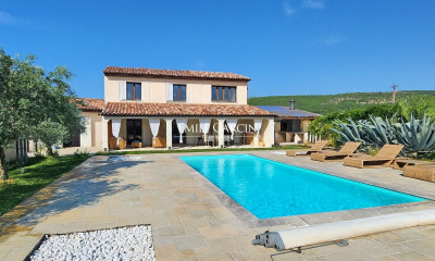 Située au cœur des Alpes de Haute Provence, cette villa contemporaine de 265 m² s’étend sur un terrain paysager de 3 000 m², offrant un cadre naturel unique et préservé avec une vue imprenable sur la montagne de Lure. Le rez-de-chaussée accueille une entrée lumineuse, un séjour salle à manger convivial, une cuisine équipée, deux chambres et une salle d’eau. Une pièce de 43 m², actuellement aménagée en atelier bien peut facilement devenir une chambre supplémentaire. À l’étage, une superbe suite parentale avec dressing et grand bureau complète l’ensemble. Une cave de 60 m² offre un espace de stockage exceptionnel pour les amateurs de vins. Les prestations conjuguent modernité et confort : poêle Godin, domotique, internet Starlink, menuiseries aluminium, matériaux contemporains, tout-à-l’égout. À l’extérieur, un écrin de verdure parfaitement aménagé invite à la détente : patio, dépendances, espaces paysagers soignés et une magnifique piscine chauffée 9x4 m avec plages, offrant un panorama spectaculaire. Un bien rare où élégance contemporaine, confort et art de vivre provençal se rencontrent.