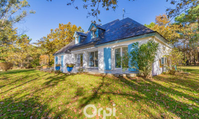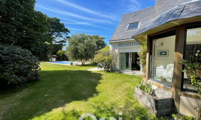 EXCLUSIVITE CARNAC A 5 minutes des plages, au coeur d'un magnifique parc clos et arboré, une maison de charme en excellent état vous offre de généreux volumes, séjour salon avec cheminée, plafond cathédrale et salle à manger 61 m² cuisine indépendante 25 m², bureau, suite parentale en RDC et 3 autres chambres à l'étage possibilité d'une quatrième. Vaste piscine chauffée et abri à usage de garage.