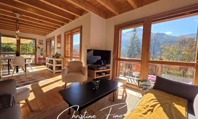 Au cœur de la station de Serre Chevalier, ce chalet de prestige séduit par son style traditionnel et son atmosphère empreinte de sérénité. Offrant 222 m² répartis sur deux niveaux, il profite d'une orientation plein sud qui baigne chaque espace de lumière et révèle des panoramas majestueux sur les cimes environnantes. La pièce principale, véritable âme de la demeure, s'organise autour d'un poêle central, créant une ambiance chaleureuse où se conjuguent confort et raffinement. De larges terrasses prolongent cet espace de vie et invitent à partager des instants conviviaux face à une vue exceptionnelle. Le chalet propose cinq chambres et trois salles d'eau, assurant à chacun intimité et bien-être. S'ajoutent un home cinéma, un ski room, un parking pouvant accueillir jusqu'à cinq véhicules, ainsi qu'un terrain de 500 m². À seulement quelques minutes des pistes, cette propriété rare se destine aux amateurs de montagne, qu'ils recherchent l'effervescence des sports d'hiver ou la quiétude des saisons plus douces, dans un cadre où élégance et authenticité s'unissent harmonieusement.