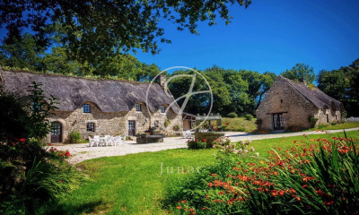 A quelques minutes du littoral, ce bel ensemble de cinq habitations de plus de 400 m² avec piscine couverte, est implanté sur près d'un hectare de terrain. Cette vaste propriété de caractère pourra se prêter à différents projets tels que gîtes, grande propriété de famille ou habitat partagé. Descriptif : Tous les gîtes composant ce bel ensemble de caractère sont indépendants les uns des autres. La première bâtisse en pierre d'environ 150 m², est composée d'une belle pièce de vie avec cuisine aménagée et équipée donnant sur une terrasse avec jacuzzi. Le salon intime permet de profiter de moments de détente, notamment en hiver, grâce à sa magnifique cheminée avec poêle à bois. Deux suites au rez-de-chaussée et à l'étage, ainsi que deux chambres supplémentaires et une salle d'eau permettent d'accueillir une dizaine de personnes. Un deuxième bâtiment d'environ 80 m² est quant à lui composé d'un salon sur cuisine ouverte, et de deux chambres à l'étage, d'une salle d'eau et d'un WC. Ce bâtiment peut être relié au premier. Ils offriraient ainsi près de 250 m² habitables. La troisième maison, de plus de 60 m², permet de loger 4 personnes, grâce à ses deux chambres. La pièce de vie lumineuse et la cuisine, ouvertes sur la terrasse, bénéficient d'une jolie vue sur le jardin. Indépendante, la quatrième bâtisse de 60 m² environ, est composée au rez-de-chaussée d'une belle pièce de vie donnant sur une terrasse intime, d'une cuisine ouverte, d'une chambre et d'une salle d'eau adaptées aux personnes à mobilité réduite (PMR). L'étage compte deux chambres. La cinquième habitation, d'environ 80 m², offre tout le charme typique des petites longères bretonnes. Le salon est équipé d'un poêle à bois et la cuisine est ouverte sur la pièce de vie. A l'étage, se trouvent deux chambres. Une dépendance en bois, permet d'accueillir de grandes tablées. La piscine de 10 x 4,50 m, implantée légèrement à l'écart des bâtiments, est entièrement couverte et chauffée. Environnement : La propriété se trouve à 6 km des plages et du littoral, à 4 km des commerces, à 13 km de Lorient et de sa gare LGV. (3.30 % d'honoraires TTC à la charge de l'acquéreur.) Emilie LAVILLE (EI) Agent Commercial - Numéro RSAC : 830 739 306 - Lorient.