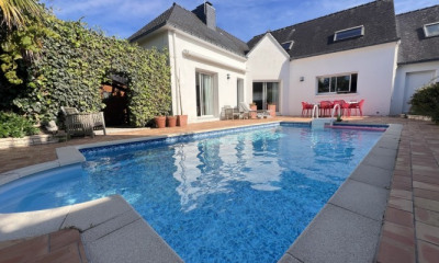 Située au cœur de Ploemeur, avec un accès immédiat à tous les commerces et services, découvrez cette maison de caractère de 240 m2, édifiée en 1980 avec des matériaux de qualité, et nichée sur un terrain clos de 624 m2 parfaitement exposé. Répartie en trois appartements distincts et modulables, cette propriété est idéale pour une grande famille ou comme projet d'investissement locatif.Le rez-de-chaussée propose un appartement T2 où confort et accueil se mêlent: un chaleureux salon s'ouvrant sur une irrésistible et large terrasse, une cuisine séparée, une chambre paisible et une salle d'eau. L'étage supérieur, un véritable cocon de lumière, révèle l'appartement principal (T5) avec un spacieux séjour agrémenté d'une cheminée, une cuisine indépendante, deux chambres, un bureau, une salle de bains et un WC. Le dernier étage dévoile un appartement de type 4 à l'ambiance "cosy" comprenant un séjour, une cuisine aménagée, trois chambres, une salle d'eau et un WC indépendant.Pour l'aspect pratique: Un appentis et un VASTE GARAGE traversant avec une cave à vin souterraine complètent les prestations de cette propriété, alliant emplacement privilégié, générosité des espaces et luminosité exceptionnelle.Après rénovation, cette demeure au potentiel évident est prête à être transformée selon votre vision, et à devenir le cadre idéal pour votre projet familial ou d'investissement. OPPORTUNITE A SAISIR RAPIDEMENT!
