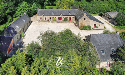 Un cadre idyllique pour ce moulin et son étang de près de 2 hectares. Vous recherchez le calme et la sérénité.. ce lieu est fait pour vous ! Un véritable paradis pour les pêcheurs et amoureux de l'eau ! Descriptif : L'ancien moulin du XVIIIème siècle est situé face à l'étang. Sur plusieurs niveaux, il a été entièrement rénové. Le rez-de-chaussée comporte une entrée desservant une chambre avec sa salle d'eau et une pièce pouvant servir de dressing. De l'autre côté, une grande pièce avec partie chaufferie. Au rez-de-jardin, une salle à manger - salon avec cheminée s'ouvre sur une véranda faisant face à l'étang et permettant de profiter de la quiétude de l'eau. Une cuisine indépendante, une salle de bains avec wc, un grand salon TV - espace jeux, une salle d'eau avec wc et l'ancienne pièce avec le mécanismes du moulin complètent ce niveau. A l'étage supérieur, deux chambres dont une avec salle d'eau et un troisième espace nuit. Face au moulin, une dépendance en deux parties. La première donnant dans la cour se compose d'une salle de sport - chaufferie. La seconde partie tournée vers le parc et le bief du moulin qui serpente sur le côté, comprend une pièce de vie avec salon et cuisine équipée, une salle d'eau avec wc; à l'étage, une pièce palière en mezzanine, une chambre et un bureau. Une seconde dépendance à usage de garage ouvert et une piscine chauffée complètent l'ensemble. Environnement : La côte et les plages à 35 m, ainsi que Lorient. Les commerces sont à 4km. (2.93 % d'honoraires TTC à la charge de l'acquéreur.)