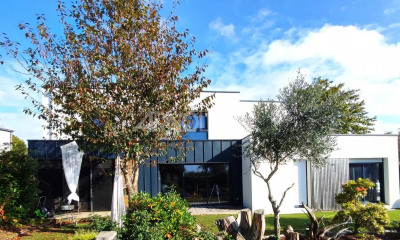 Au cœur du bourg de Surzur, à seulement 15 minutes de Vannes et 10 minutes des plages de l'océan, découvrez cette maison contemporaine de 200m², nichée dans un vaste terrain paysager de 1900m². Dès l'entrée, vous serez instantanément séduit par l'ambiance lumineuse et aérienne qui règne dans cette demeure, où une généreuse pièce de vie s'ouvre sur une belle terrasse plein sud, donnant sur un jardin arboré. La cuisine dinatoire semi-ouverte, alliant modernité et fonctionnalité, crée un espace idéal pour partager des moments conviviaux en famille ou entre amis. La suite parentale, avec son atmosphère calme et intime, vous offrira un refuge de sérénité, tandis qu'un bureau indépendant vous permettra de travailler en toute tranquillité. À l'étage, l'espace familial se déploie harmonieusement, avec trois belles chambres lumineuses, une grande salle de bains équipée d'une baignoire et d'une douche, ainsi qu'une mezzanine offrant de nombreuses possibilités d'aménagement, telles qu'un coin lecture ou un bureau supplémentaire. L'ensemble de cette propriété est complété par un garage attenant avec un espace buanderie, un grenier pratique pour un rangement optimal et une seconde dépendance, actuellement aménagée en grand garage mais offrant une flexibilité d'aménagement selon vos besoins (atelier, salle de jeux, studio..). À l'extérieur, vous pourrez profiter d'un magnifique jardin clos et arboré, véritable havre de paix, ainsi qu'une piscine sécurisée de 10x5m, idéale pour se détendre lors des journées ensoleillées. Cette maison, qui allie parfaitement modernité, confort et fonctionnalité, bénéficie d'un cadre paisible et verdoyant tout en étant à proximité immédiate de toutes les commodités. Un lieu idéal pour une vie épanouie, entre nature et modernité