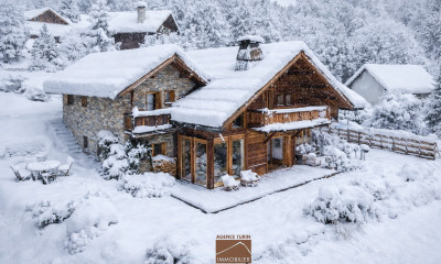 Chalet de prestige – La Salle Les Alpes – Skis aux pieds Au cœur de Serre Chevalier, au pied des pistes, superbe chalet récent de 370 m² pouvant accueillir jusqu’à 24 personnes. Édifié sur 3 niveaux + sous-sol, il allie charme alpin et matériaux nobles, mélèze, pierre naturelle, dans un cadre rare. Prestations haut de gamme, grand séjour avec cheminée et cuisine ouverte, terrasse plein sud avec vue panoramique, 8 chambres dont 2 suites parentales, 2 dortoirs, 6 salles d’eau/bain, 4 WC, espace bien-être avec spa, sauna, hammam, jacuzzi, salle de cinéma, ski-room, cave à vins, buanderie et 3 places de parking privatives. Accès direct aux pistes (ski-in/ski-out) Un bien rare sur le marché, alliant confort, luxe et situation exceptionnelle. Prix de vente honoraires d'agence inclus : 3 480 000€