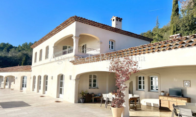 CABRIS - CO EXCLUSIVITE Découvrez cette superbe villa qui marie avec raffinement modernité et charme provençal. Véritable havre de paix, elle a été conçue pour offrir un cadre de vie idéal, aussi bien au quotidien que pour les séjours de vacances. Nichée sur une vaste parcelle sans vis-à-vis et à l’abri de toute nuisance sonore, la propriété bénéficie de vues panoramiques exceptionnelles sur la vallée, la mer et le pittoresque village médiéval de Cabris. D’une superficie de 232,82 m² habitables répartis sur trois niveaux, cette élégante demeure se compose d’un hall d’entrée avec placard intégré, d’un vaste salon cathédrale baigné de lumière et d’une salle à manger ouverte sur une cuisine entièrement équipée, une buanderie, un toilette invité. À l’étage, une belle suite parentale avec salle de bains, dressing et un espace bureau en mezzanine offrent confort et intimité. Le rez-de-jardin accueille trois chambres supplémentaires, une salle de douche, un grand studio indépendant avec cuisine équipée, ainsi qu’une buanderie ou salle d’eau. Un atelier, de nombreux rangements et un double garage attenant viennent compléter l’ensemble. Le jardin paysager invite à la détente et à la convivialité avec ses terrasses ensoleillées, son salon d’été couvert et sa somptueuse piscine à débordement chauffée dotée d’une plage aménagée pour profiter pleinement du soleil.