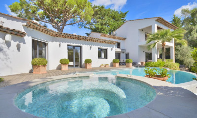 Cannes-Super Cannes, sur l'un des boulevards les plus prestigieux de Cannes se trouve cette propriété unique pleine vue mer en position dominante. Elle est composée d'une villa principale et d'une maison de gardien édifiée sur un terrain de 3785m2. D'une superficie habitable de 330 m² de plain-pied, cette maison pourrait être surélevée avec un étage supplémentaire offrant un panorama à 360° sur la mer et le massif des Préalpes. Depuis le portail, une grande allée mène à la villa principale et propose de nombreux emplacements de stationnement. La propriété est composée d'un hall d'entrée, d'une très grande salle à manger, d'un salon, d'une cuisine, de quatre chambres, deux salles de bains avec WC, une salle d'eau, de nombreuses pièces de rangements, d'un dressing et d'une cave. Une superbe piscine et un pool house avec cuisine d'été agrémentent la maison. Ce bien représente une très belle opportunité de vivre dans un petit coin de paradis niché dans les collines de Super Cannes. Une étude faite par un architecte est disponible. DPE : 166 – D Emission de Gaz à effet serre : 34 - D Estimation des coûts annuels d'énergie du logement : 3910 à 5380 euros. Honoraires de transaction à la charge du vendeur. Les informations sur les risques auxquels ce bien est exposé sont disponibles sur le site Géorisques : Le marché immobilier de luxe sur la Côte d'Azur est l'un des plus attractifs de la région méditerranéenne. Les maisons de vacances et résidences secondaires sur la Côte d'Azur offrent non seulement un style et une qualité de vie incomparable mais représentent aussi, au regard de la situation économique internationale, un investissement sûr et un projet de retraite intelligent, notamment aux adresses premiums. Super Cannes est un secteur renommé et exclusif. Quartier résidentiel haut de gamme, Il se caractérise par ses luxueuses villas et appartements de luxe bénéficiant d'un panorama à couper le souffle sur la mer et les collines environnantes. Calme, discrétion et tranquillité assurés à moins de 5km du centre-ville.