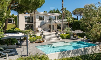Située dans le quartier résidentiel de Super-Cannes, cette propriété se trouve à quelques minutes en voiture des plages et du centre-ville de Cannes. Le terrain s’étend sur environ 5 hectares et offre une vue dégagée sur la Méditerranée. Il comprend des zones arborées, un jardin potager, des pelouses entretenues et diverses essences végétales méditerranéennes. On y trouve également une forêt privée avec sentiers. La maison principale dispose de 9 suites, d’un hall d’entrée vitré, d’une salle de réception avec grande hauteur sous plafond, d’un salon avec cheminée, d’un bureau, d’une salle de cinéma, d’une cuisine professionnelle et d’un espace repas avec bar et cave à vin. L’ensemble est équipé de matériaux et prestations haut de gamme. Plusieurs terrasses entourent la villa, certaines couvertes, avec des espaces repas et salon extérieurs. Une piscine chauffée est également présente, avec vue sur la mer. Une maison d’hôtes séparée comprend deux suites, une salle de sport, une piscine et une cuisine d’été. Un appartement de gardien avec deux chambres y est intégré. Une deuxième maison d’invités, plus petite, se trouve dans la partie basse du jardin, avec une chambre, une salle de bain, une kitchenette, et une salle à manger extérieure équipée d’un grill à feu ouvert. La propriété dispose de deux entrées principales pour véhicules et de plusieurs emplacements de stationnement. Une troisième entrée indépendante dessert les logements annexes et leur garage. Les informations sur les risques auxquels ce bien est exposé sont disponibles sur le site Géorisques : www.georisques.gouv.fr