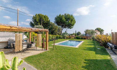 COLOMARS / BELLET : À une vingtaine de minutes du centre de Nice et de l'aéroport, au sein d'un quartier résidentiel, superbe appartement/villa 4 pièces de 110 m² Carrez avec studio indépendant de 30 m². Édifiée sur un terrain de 1000 m², cette maison est divisée en deux appartements et celui que nous vous proposons bénéficie d'un magnifique jardin plat et arboré avec piscine et pool-house. En situation dominante et au calme absolu, cet appartement offre une magnifique vue dégagée sur la mer et les collines ainsi qu'un confort de vie des plus agréables. Ce bien d'exception entièrement climatisé et luxueusement rénové se compose d'un spacieux séjour baigné de lumière grâce à de multiples baies vitrées, d'une cuisine américaine équipée donnant sur une vaste terrasse à ciel ouvert de 26 m² avec vue panoramique sur la mer sans vis-à-vis, d'une chambre de maître avec salle de bains et dressing, de deux autres chambres, d'une salle de douche avec WC et d'un WC indépendant. En Rez-de-jardin, un studio indépendant de 30 m² composé d'une pièce à vivre avec mezzanine et d'une salle d'eau avec WC avec possibilité d'y aménager une cuisine. Idéal pour recevoir des amis en toute intimité ou pour générer des revenus locatifs. Une buanderie attenante complète ce bien. Ce remarquable appartement vous séduira par ses généreux volumes, ses espaces extérieurs idéalement aménagés, ses prestations haut de gamme ainsi que son ensoleillement permanent. Excellent DPE en B. Le terrain est complanté d'un grand poulailler à repenser, pouvant constituer un atelier ou un espace de vie à part entière. Stationnement aisé, possibilité de garer 4 véhicules sur la parcelle. Proche des écoles et des commodités du quartier. Honoraires de 5% inclus à la charge du vendeur. Les informations sur les risques auxquels ce bien est exposé sont disponibles sur le site Géorisques:
