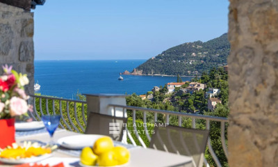 Au cœur de l’Estérel, dans le secteur des Adrets de l’Eglise, superbe propriété d’environ 230m2 avec vue mer, sur un terrain d’un hectare. Dès l'entrée, vous serez subjugués par l'ampleur de l'espace de vie, baigné de lumière naturelle, avec une très belle hauteur sous plafond et poutres apparentes, salle à manger, salon et cuisine aménagée s’ouvrent sur l’espace extérieur. Côté nuit de plain-pied, se trouve 3 chambres, 2 salles de bain et un wc indépendant. A l’étage, un joli dégagement avec coin lecture surplombe l’espace cuisine et amène à la chambre parentale avec salle de bain et terrasse privative. La villa est agrémentée d'un garage fermé et une buanderie. L'espace extérieur est tout aussi chaleureux, avec une piscine et un coin salon d’été pour profiter des longues et belles journées ensoleillées. La vue panoramique qui s'offre à vous est à couper le souffle, vous permettant de profiter pleinement de ce cadre enchanteur. Cette propriété est un bijou au cœur de la nature, à seulement 15 minutes des plages et des commerces du port de la Napoule et 25 minutes du bassin cannois.