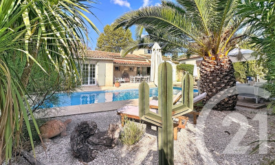 Ne ratez pas cette Villa contemporaine à vendre à Mandelieu-la-Napoule, offrant un cadre de vie au calme absolu, à seulement 5 minutes des commodités en voiture. D'une surface totale de plancher de 260 m², elle offre aujourd'hui 154 m² habitables en parfait état comprenant, au niveau principal (accessible de plain-pied en voiture) un vaste hall d'entrée, un séjour très lumineux de 50 m² et ouvert sur une grande cuisine équipée de 24 m² avec sa salle à manger attenante, le tout accédant à la terrasse d'angle de 48 m² avec une vue panoramique sur les collines, la baie de Cannes et la mer, jusqu'à Théoule. Au même niveau de vie, 3 grandes chambres dont une chambre de maître de 17 m² et sa salle de bains en suite, et deux autres chambres de plus de 14 m² avec une autre salle de bains complète. Au rez de chaussée, vous garerez facilement plusieurs véhicules devant l'immense garage de 92 m², et vous pourrez utiliser une belle pièce à vivre de 12 m² en chambre d'appoint (ou bureau), avec également une salle d'eau et un wc attenants. Cet espace peut, partiellement ou totalement être aménagé en logement indépendant, sans compter la possibilité d'agrandissement potentiel de la villa. L'extérieur est un véritable atout : Magnifique terrain de 2560 m² agrémenté d'une superbe piscine de forme libre entourée de plages dallées, et son pool-house avec cuisine d'été. Petit clin d'oeil aux amis des animaux avec un poulailler de 10 m² au bout de la propriété, ainsi qu'un potager, le tout en limite d'espace vert protégé inconstructible. Prix demandé : 1 195 000 euros justifié. Opportunité à ne pas manquer — contactez-nous pour organiser une visite et découvrir ce bien ''coup de cœur''. La Visite Virtuelle en disponible sur demande et en agence. Référence agence : 8866