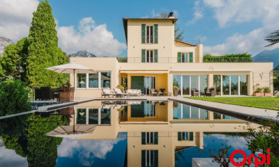 Menton Castellar ,Maison d 'architecte, bergerie en pierre et maison bois, édifiées sur 2785 m² de terrain . Mots clefs afin de synthétiser ce produit rarissime sur le bassin Mentonnais: vue mer panoramique et baie Mentonnaise . bassin provençal. Au total 5 chambres, 1 salle à manger, cuisine équipée,1 salon, 4 wc, 2 salles de bains, 1 salle de douche, cave, cellier et de nombreuses dépendances. Eau de source, écologie, murs en pierres sèches, vieilles pierres, pins, oliviers, le calme, cheminées ,exposition sud et ouest resument l 'esprit de ce bien. la Maison bois donne sur 65 m2 de terrasse et 10 m2 de terrasse bois suspendue + restanques en pierres sêches Droit d eau de source .Receveur eau de source 6 m2.parkings à l 'arrivée devant la maison.En redescendant au parking , cave sous la terrasse du Niv 1.sommes sous Fosse septique. total maison exprimée en loi carrez: 180m² et 5,83 scellier, cave sous terrasse 0, 8m² incidence escaliers non carez.5,477 local technique
