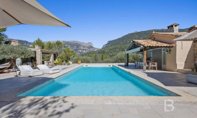 Maison d'architecte, 171 m², à proximité des commodités du village sur un terrain paysager de près de 3500 m². Cette propriété d'exception, signée Robert Maestracci, représente un bien immobilier de prestige aux prestations haut de gamme. Entièrement rénovée avec des matériaux de qualité, elle offre un cadre de vie chaleureux et raffiné, idéalement exposé plein sud. L'entrée révèle des volumes généreux, caractéristiques d'une architecture pensée pour la lumière et le mouvement. La maison s'organise avec fluidité sur plusieurs demi-niveaux. L'espace de réception comprend un salon lumineux et une salle à manger, prolongés par cinq terrasses aux ambiances distinctes. Une élégante cuisine provençale, aménagée et fonctionnelle, complète cet espace de vie. L'agencement intérieur propose actuellement deux belles chambres, ainsi qu'un bureau facilement transformable en chambre supplémentaire. Une salle de bains et des WC indépendants sont situés à ce demi-niveau. Le niveau inférieur est doté d'un second bureau et d'une salle vidéo, offrant un fort potentiel d'aménagement pour devenir deux chambres additionnelles selon les besoins de l'acquéreur. Une salle d'eau, une buanderie et de nombreux rangements sont également disponibles. Le parc arboré de 3500 m² est un véritable écrin sans aucun vis-à-vis. Les extérieurs invitent à la détente avec oliviers, agrumes, pergola, fontaine et terrain de boules. La localisation est idéale : à deux pas des écoles, du collège, de la maison de santé et des principaux commerces. Ce lieu de vie unique combine l'intimité d'une propriété isolée avec la praticité d'un accès immédiat aux services. Ce bien atypique est un coup de coeur assuré. Découvrez l'intégralité du cachet et du potentiel de cette demeure d'architecte. CLASSE ÉNERGIE : E / CLASSE CLIMAT : E. Montant estimé des dépenses annuelles d'énergie (2021) : entre 4 207 € et 5 691 €. Informations sur les risques disponibles sur Géorisques. Cyril DIACON (EI) Agent Commercial - Numéro RSAC : 518 576 830 - GRASSE.