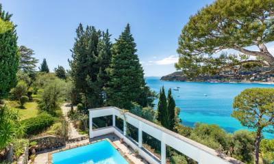 Villa provençale sur le Cap-Ferrat avec vue mer panoramique Située au versant ouest du Cap-Ferrat, en deuxième ligne de mer, cette villa bénéficie d'une vue dégagée jusqu'au Cap d'Antibes et d'une exposition Sud-Ouest idéale. D'une surface d'environ 300 m² sur deux niveaux, elle comprend un séjour de 40 m² ouvrant sur une terrasse, une cuisine séparée et équipée, cinq chambres principales et trois chambres supplémentaires sous la terrasse, ainsi que trois salles de bains et cinq salles d'eau. Un patio central apporte lumière et caractère à l'ensemble. Le terrain de plus de 7 000 m² offre un jardin arboré et une piscine à débordement chauffée avec vue mer. La villa est équipée d'une pompe à chaleur, d'un garage pour quatre voitures et d'un funiculaire reliant le boulevard au garage. Cette propriété présente un potentiel de rénovation ou d'aménagement important, permettant de personnaliser les espaces selon vos besoins. Pour toute information complémentaire ou visite, contactez le Private Desk de Côte d'Azur Sotheby's International Realty.