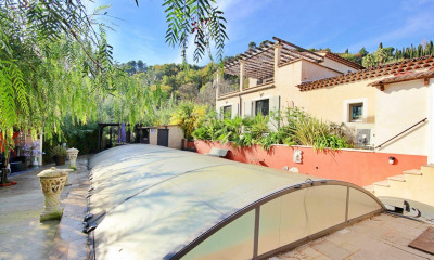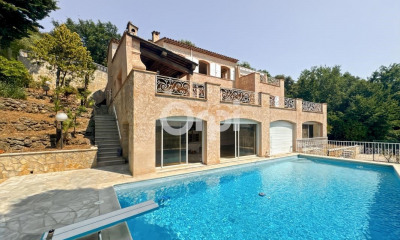 OFFRE D'ACHAT ACCEPTÉE Située à quelques enjambées du village de Saint-Paul de Vence, cette propriété cossue d'environ 285 m² + garage 7 voitures bénéficie d'un environnement calme et résidentiel et d'un jardin paysager de 2 600 m² avec piscine chauffée et à débordement. L'étage de vie se compose d'une belle entrée lumineuse, d'un salon/salle-à-manger volumineux avec cheminée, d'une grande cuisine dînatoire, l'ensemble largement prolongé par une généreuse terrasse de 130 m². Toujours de plain-pied, la Suite parentale offre tout le confort nécéssaire avec salle de bains/douches et son dressing. Deux chambres avec salle de douches et salle de bains ensuite complète le niveau. L'étage inférieur offre 2 chambres avec salle de douches ainsi qu'un bureau (possibilité 6° chambre), une buanderie et une gigantesque garage de plus de 220 m² pour 7 voitures. Ce bureau et la buanderie, accessibles depuis un vaste dégagement doté d'une véritable porte d'entrée indépendante, offrent un espace parfaitement adapté à l'exercice d'une activité libérale à domicile. Le jardin paysager est complanté de magnifique essences méditerranéennes ainsi que de grands oliviers multi-centenaires. La piscine de forme libre est un véritable havre de paix !