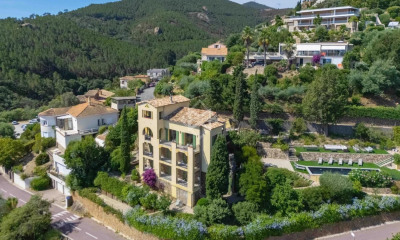 Votre agence LG Prestige Immobilier de Théoule-sur-Mer vous propose de découvrir ce bien haut de gamme : Majestueuse propriété dans le secteur ultra exclusif de la Pointe de l’Aiguille bordant le parc Naturel de l’Estérel. Surplombant un panorama extraordinaire, cette villa néo-provençale bénéficie de prestations raffinées et totalise 340m² habitables dont 280m² de plain-pied. Elle offre un vaste séjour de 115m² avec cheminée permettant de recevoir agréablement vos invités, 5 chambres avec vue mer, une cuisine équipée et une somptueuse cave à vin. S’ajoutent à cela 130m² d’annexes, pièces de services, studio indépendant, grand garage pour 4 Véhicules, 2 stationnements extérieurs couverts. Côté jardin vous profiterez avec plaisir du calme, de terrasses ensoleillées, d’un espace pétanque, d’une superbe piscine au sel qui borde un confortable pool-house équipé et d’une surface gazonnée avec Hamac. Le tout dans un écrin de verdure, terrain entièrement paysagé. Vue Mer féerique sur la baie de Cannes et Iles de Lérins.
