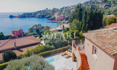 Située dans un domaine recherché à Théoule-sur-Mer, à 10 minutes à pied du village et à 15 minutes de Cannes, cette magnifique propriété offre une vue panoramique sur Théoule et les îles de Lérins. Cette charmante maison atypique se compose d’un séjour lumineux ouvrant sur une vaste terrasse, d’une cuisine semi-ouverte, d’une suite parentale, d’une chambre en suite ainsi que d’une dépendance comprenant un séjour, une kitchenette et une chambre. En annexe : une buanderie, une cave à vin, un garage pouvant accueillir trois voitures, un abri voiture et un emplacement privé supplémentaire. Un permis de construire a été accordé pour la création de 20 m² supplémentaires.
