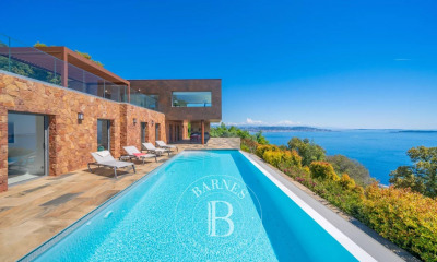Moderne et lumineuse, la ville dispose d'une piscine chauffée à l'eau salée lotit sur un terrain d'environ 1050m². Le salon ouvert, doté d'une cheminée, ainsi que la salle à manger donnnt sur une terrasse spacieuse. La cuisine est entièrement équipée. La chambre principale climatisée a un dressing et une salle de bains attenante. Le niveau de la piscine comprend trois chambres supplémentaires avec vue mer, chacune avec sa salle de bains. Une buanderie, une cave à vin et un garage complètent ce bien. Les informations sur les risques auxquels ce bien est exposé sont disponibles sur le site Géorisques : www.georisques.gouv.fr