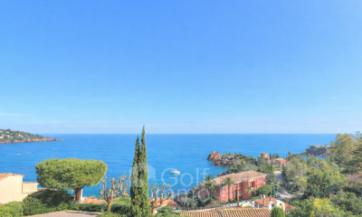 Exclusivité - Située dans l’un des domaines les plus prisés de Théoule-sur-Mer, en lisière d’une zone naturelle inconstructible, cette propriété rare jouit d’un calme absolu et d’une vue spectaculaire sur l’Estérel, la mer et la baie de Cannes. À seulement 5 minutes du village et 15 minutes de Cannes, elle offre un équilibre parfait entre sérénité et accessibilité. Dotée d’une signature architecturale unique, offrant environ 315 m² de volumes sculptés, cette villa, imaginée dans l’esprit Couëlle, séduit par ses courbes iconiques, son charme et ses espaces traversants. Elle se compose de : - Une entrée élégante ; - Un vaste séjour avec salle à manger et cheminée, en connexion directe avec la terrasse et la piscine ; - Une cuisine indépendante ; - Trois chambres en suite, chacune avec salle d’eau privative ; - Un bureau. Annexes et espaces fonctionnels : très grand sous-sol comprenant : - Un deuxième bureau ; - Une buanderie ; - Une cave ; - Un appartement de gardien (séjour, kitchenette, chambre, salle de douche) ; - Un garage ; - Un grand abri voiture. Terrain paysager de 2 742 m², au cœur de l’Estérel, offrant toutes les expositions, intimité, verdure et un panorama exceptionnel.