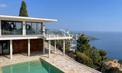 Théoule-sur-Mer : Située dans un domaine privé très recherché, à seulement 5 minutes des plages, cette villa de style provençal vous séduira par sa position dominante offrant une vue époustouflante sur la baie. Baignée de lumière tout au long de la journée grâce à sa double exposition, elle promet un cadre de vie exceptionnel. Sur une surface habitable d'environ 250m2, elle se compose comme suit : Au niveau supérieur, une chambre maître avec sa terrasse et sa salle de bain en suite, une chambre avec sa salle de douche et un WC indépendant. Au niveau intermédiaire, un grand séjour ouvert sur une magnifique terrasse surplombant la baie, une salle à manger, une cuisine et une chambre avec sa salle de douche et son WC indépendant. Au niveau piscine, une chambre avec salle de bain, une buanderie. Depuis la piscine à débordement (5x10m) votre oeil se fond littéralement sur la mer. La maison est construite sur un terrain de 1100 m2