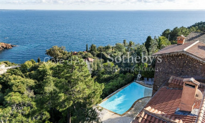 Dans un quartier recherché de Théoule-sur-Mer, villa neuve avec piscine sur le toit et profitant d'une vue panoramique sur la mer et les plages de Théoule. La villa s'ouvre sur un double séjour lumineux profitant de la vue sur la pointe de l'Aiguille, avec une cuisine américaine équipée. Au même niveau se trouvent une chambre de maître avec salle de douche et dressing, une chambre en-suite avec douche ainsi que 2 chambres partageant une salle de douche. À l'étage inférieur se trouve une 5ème chambre en-suite avec sa salle de douche. Le toit de la villa accueille une belle piscine à faiences balinaises, un pool house avec cuisine d'été, de belles terrasses et des coins de verdures pour profiter de la vue sur la mer. Une buanderie ainsi qu'une cave complète la villa. Garage pour 2 voitures. Climatisation, alarme, pompe à chaleur, adoucisseur d'eau, pompe de relevage. Frais réduits.