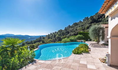 Situation privilégiée Vue Mer et Massif de l'Esterel pour cet exceptionnel authentique vieux Mas, évolutif et intimiste en pierre du XVIIIème siècle, de 156 m² habitables, s'articulant autour d'une double réception, d'une cuisine équipée avec un cellier attenant, d'un bureau, de 3 chambres, d'une salle de bains et d'une salle d'eau. Cette magnifiue oliveraie séculaire s'étend sur une superficie d'environ 11425 m² clôturée et complantée de 200 pieds d'olivier. Annexes : Garage, abri voiture, parking, terrasses, piscine à débordement. Cette propriété autorise l'extension de 49.99 m² de surface plancher (permis de construction en cours de validité).