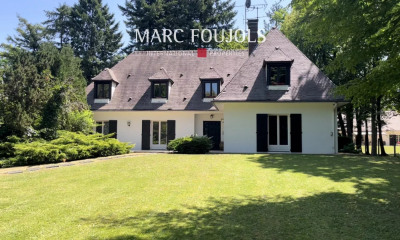Dans Domaine Privé du Lys Chantilly, propriété de 180 M2 habitables comprenant au RDC : Séjour de 44 M2 avec cheminée et baie vitrée donnant sur terrasse plein sud , cuisine , une suite parentale, chambre et sa salle de bains . A l ‘étage , 3 chambres et un bureau , trois salles de bains . Sous sol Chauffage gaz Travaux à prévoir . Très beau terrain de =3800m2 . Proximité immédiate du Golf à pied .