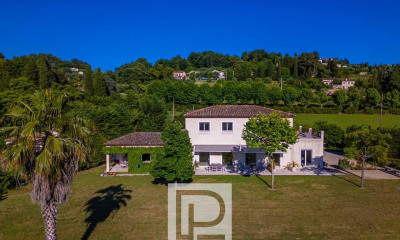 Superbe contemporaine en cours de construction, matériaux et équipements haut de gamme. Frais de notaire réduits. Petit domaine fermé et sécurisé de 4 villas, proche de Valbonne. Chaque villa comprend, sur 2 niveaux : Grand espace de réception de 70 m² avec salon salle à manger, cuisine ouverte Chambre avec salle de douche et toilettes ; dressing Toilettes invités accès PMR Au 1er étage : 4 chambres avec 1 salle de bains et toilette ; 3 salles de douche et toilettes ; 3 dressings Salles de bain équipées Volets roulants 2 coffres forts Climatisation réversible (pompe à chaleur) Alarme et Vidéo surveillance Séjour carrelage Salle d’eau Carrelage Chambres Parquet Accès au site par portail télécommandé et vidéo Panneaux solaires Domotique Cellier Buanderie Garage 2 véhicules en sous-sol Jardin et piscine