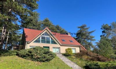 En exclusivité, à Hardelot, sur le Golf des Dunes, à 5 minutes de la plage et 20 minutes du Touquet-Paris-Plage, villa contemporaine de plus de 750 m² avec prestations haut de gamme. Rez-de-chaussée : hall d’entrée ouvrant sur un séjour-salon de 96 m², cuisine, arrière-cuisine, trois chambres chacune avec salle de bain, garage deux voitures.À l’étage : suite parentale avec dressing, salle de douche et bureau. Chaque pièce bénéficie d’un accès à une terrasse avec vue sur le golf.Sous-sol : home cinéma de 50 m², bureau, atelier, cave à vin climatisée, salle de billard, salle de sport, espace piscine de 160 m² avec bassin 3,5 x 15 m, espace bar, salle de douche et accès indépendant depuis l’extérieur. Chauffage au gaz de ville, plancher chauffant. Assainissement collectif. Dossier complet sur demande. DPE: 97 (Indice B) GES: 20 (Indice C)