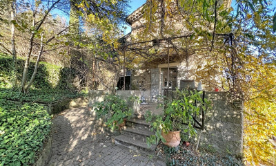 Sur les hauteurs de la rivière Ardèche, en amont de la ville d'Aubenas, un manoir du 16e s. et sa piscine chauffée, au pied des montagnes. Mentionné dès 1414, le fief de Fabrias s'inscrit dans un long récit historique. L'édifice actuel fut élevé sur les vestiges d'une ruine, comme en atteste un billet de chantier daté de 1610. Bâti pour le compte du seigneur de Chanaleilles, qui en fit son fief jusqu'en 1735, il passa ensuite dans le giron de Cappendu de Remeuil, architecte du Roi et figure marquante de la région. Il devint la résidence d'Agnès Perrin-Lacroix en 1986, avant d'être transmis en 2005 à ses occupants actuels. La maison semble avoir été édifiée en grande partie sur la même période. Ses murs, dont l'épaisseur varie entre 0,98 et 1,30 m, témoignent d'une construction solide et pérenne. À l'intérieur, les poutres en châtaignier rythment l'espace, tandis que les sols conjuguent bois et tomettes anciennes, certaines peintes à la main. À l'arrière, une vaste citerne creusée dans la roche, visible par endroits, recueille les eaux de pluie. Plus haut, à l'abri des regards, une piscine chauffée par le soleil est alimentée par les eaux vives des sources environnantes. Construit à même la roche, l'ensemble dialogue harmonieusement avec son environnement. De l'autre côté de la ruelle, en vis-à-vis de l'entrée principale, une ancienne terrasse de battage surplombe un jardin où un ruisseau, serpente au pied des oliviers, arbres fruitiers et autres essences méridionales.