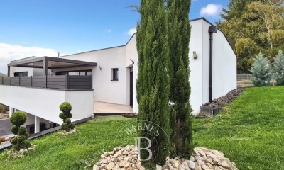 Villa Contemporaine de Prestige – 247 m² A 20 min de Clermont-Ferrand, ville prisée de Veyre-Monton Cette construction d'exception marie élégance et modernité. Son vaste séjour lumineux de 100 m², ses 5 chambres dont une suite parentale, ainsi que ses prestations haut de gamme (cuisine équipée, terrasses, toit-terrasse, sous-sol, stationnement double) offrent un confort absolu. Implantée sur un terrain plein sud de 645 m², piscinable, cette maison de 2021 vous promet des instants uniques entre raffinement et sérénité. Proximité écoles, commerces et transports. Un bien rare, pensé pour une vie d'exception. Contactez nous dès maintenant pour prévoir une visite au O6 84 31 74 65 CBF conseils 11 rue Alfred Punett 63140 Châtel-Guyon, exerçant l'activité de transactions sur immeubles et fonds de commerce, immatriculation 892 965 708 R.C.S Clermont-Ferrand Titulaire de la carte professionnelle n° CPI 6302 2021 000 000 005 délivrée par le président de la chambre de commerce et de l'industrie de Clermont-Ferrand. Honoraires à la charge du vendeur. Classe énergie B, Classe climat B Montant moyen estimé des dépenses annuelles d'énergie pour un usage standard, établi à partir des prix de l'énergie de l'année 2021 : entre 950.00 et 1390.00 euros. Les informations sur les risques auxquels ce bien est exposé sont disponibles sur le site Géorisques : georisques.gouv.fr. Votre conseiller CBF CONSEILS AUVERGNE : Paula Mendes Agent commercial (Entreprise individuelle) RSAC 888611332