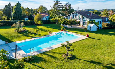 Située au coeur d'un environnement préservé, à seulement quelques minutes du prestigieux Golf d'Arcangues, cette rare propriété contemporaine conjugue harmonieusement calme absolu, cadre bucolique et proximité immédiate des plages et des commodités. À 10 minutes en voiture du centre de Biarritz, de son aéroport international et de sa gare TGV, et à seulement 20 minutes à vélo des plages de Bidart et d'Ilbarritz, cette demeure offre un cadre de vie privilégié, entre mer et montagnes, dans l'authenticité du Pays Basque. Édifiée en 2010 par un architecte de renom, cette maison de famille d'environ 450 m² habitables séduit par son style basque revisité et sa qualité de construction irréprochable, attestée par une performance énergétique exceptionnelle (A/A). Un élégant pavillon indépendant de 70 m², idéal pour des invités ou des gardiens, complète ce bien d'exception. Pensée pour savourer pleinement la douceur de vivre locale, la propriété dispose de vastes terrasses, partiellement couvertes, offrant des panoramas spectaculaires sur la Rhune, les Trois Couronnes et les montagnes environnantes. Le parc paysager, conçu avec le plus grand soin, révèle des espaces judicieusement organisés : stationnements discrets, maison d'amis totalement indépendante, piscine élégamment intégrée, circulation automobile fluide grâce à deux accès distincts. Chaque perspective invite au repos et à la contemplation, sans vis-à-vis ni nuisance. Un havre de paix rare sur le marché, idéal pour une famille en quête d'espace, de sérénité et d'authenticité, à seulement quelques minutes de l'effervescence de Biarritz La maison principale, sur 3 niveaux, s'organise de la manière suivante : en rez-de-jardin, 1 grande entrée de 22 m², avec vestiaire et wc invités. cette entrée dessert : 1 salon de 38 m² avec cheminée, orienté au sud et faisant face à la vue campagne et montagne. Immenses baies vitrées ouvrant sur une vaste terrasse. Parquet en chêne clair. 1 vaste cuisine salle à manger d'environ 40 m² ouvrant également sur terrasse et vue. Sol en carrelage en grès. 1 bureau d'environ 20 m², accessible depuis le salon et depuis la suite principale. Parquet en chêne clair. 1 suite familiale, constituée d'une grande chambre avec sa salle de bains, wc et dressing et une chambre d'enfants en mezzanine. 1 suite principale de plus de 40 m² constituée d'une grande chambre, de deux salles d'eau avec deux dressing et wc indépendant. En arrière cuisine, cellier, buanderie et abri voiture relié à la maison. A l'étage, 1 salon d'environ 60m² avec bibliothèque, TV, billard, ouvrant sur balcon sud, vue Montagne 2 suite complètes de plus de 30m² et très indépendantes, ouvrant chacune sur son balcon avec très belle vue montagnes, chacune avec son dressing, l'une sa salle de bain, l'autre sa salle de douche, Au niveau inférieur, 1 superbe Home Cinéma 1 salle de sport avec sa salle de douche, wc, pouvant servir également servir de chambre 2 vastes pièces de stockage, parfaitement saine 1 chaufferie où sont installées les pompes à chaleur 1 terrasse couverte abritant ping-pong ou autres activités La maison est entièrement construite sur vide sanitaire, ce qui participe à la rendre parfaitement saine. Ce niveau ouvre en rez-de-jardin sur l'immense espace piscine. La maison de gardien ou d'amis, Parfaitement située pour être très indépendante de la maison principale, elle dispose d'un accès et d'un jardin indépendants. 1 entrée, 1 wc, 1 séjour de 31 m² avec cheminée ouvrant sur terrasse et jardin, 1 coin cuisine ouvert sur le séjour avec son cellier en arrière cuisine, 1 chambre de plus de 16 m² avec sa salle de bain. 2 garages fermés par portes automatiques N'hésitez pas à nous contacter pour plus d'informations. PRESTANT Realty - Benoit VERDET - +33 (0)6 71 40 54 58 - Plus d'informations (réf. 640253714). Les informations sur les risques auxquels ce bien est exposé sont disponibles sur le site Géorisques :