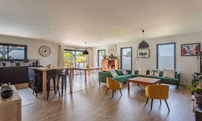 Accès et vue directe sur le Golf pour cette ravissante néobasque de 151m2 avec garage et piscine. Entièrement rénové, ce bien impeccable dispose d'un beau séjour, d'une confortable cuisine aménagée , d'une buanderie et d'une chambre avec sa salle d'eau , le tout donnant sur une grande terrasse abritée face à la piscine. L'étage est composé d'une suite avec sa terrasse et d'une autre chambre avec sa salle de bains. Une quatrième chambre en mezzanine complète la partie couchage. Les extérieurs profitent d'un joli jardin paysager exposé Sud-Sud Est en bordure du Golf avec une piscine de 8X4 chauffée et sécurisée. Quartier résidentiel, pas de vis à vis. Contacter Véronique Dessauce Honoraires inclus de 4.17% TTC à la charge de l'acquéreur. Prix hors honoraires 1 150 000 euros. Classe énergie C, Classe climat A Montant moyen estimé des dépenses annuelles d'énergie pour un usage standard, établi à partir des prix de l'énergie de l'année 2021 : entre 1120.00 et 1570.00 euros. Les informations sur les risques auxquels ce bien est exposé sont disponibles sur le site Géorisques : georisques.gouv.fr.