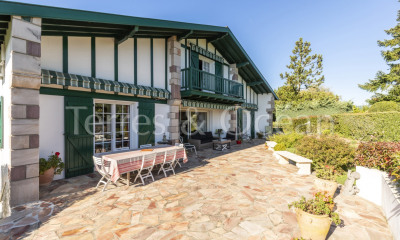 À proximité immédiate de Bayonne et des plages du Pays Basque, nichée dans un écrin de verdure, cette ravissante maison de maître de 1784 développe environ 400 m² habitables. Édifiée sur un terrain paysagé de 4 200 m², elle a fait l'objet d'une rénovation complète dans le respect de son authenticité, avec des matériaux nobles et des prestations de grande qualité. Dès l'entrée, le ton est donné : une entrée avec travertin au sol et une lumière traversante. Le rez-de-chaussée propose un vaste salon avec un insert à bûches STÛV, une élégante salle à manger, une cuisine contemporaine entièrement équipée avec plans de travail en granit et cellier attenant, ainsi qu'une salle à manger avec des volumes généreux, dotée d'un foyer ouvert avec insert FINOPTIM. Des toilettes invités complètent ce niveau. Au premier étage, trois belles chambres disposent chacune de leur salle de bains et de leurs toilettes privatives. Un salon plus intimiste, propice à la lecture ou au repos, complète cet étage. Le deuxième étage accueille une salle de sport ainsi que trois autres suites. Les extérieurs ont été pensés comme une véritable extension des espaces de vie. La terrasse principale, en pierre de la région, provient en partie des anciennes bordures du jardin et a été complétée avec une pierre similaire pour préserver l'harmonie. Les sols extérieurs sont réalisés en pierre grise d'Inde, et les allées alternent granit du Portugal et ardoise, offrant un rendu à la fois élégant et durable. Un espace piscine, un terrain de pétanque, des terrasses ensoleillées et de multiples coins de repos contribuent à une ambiance paisible et conviviale. Un garage fermé complète l'ensemble, une cave à vin ainsi qu'une belle dépendance d'environ 26 m² avec de nombreuses possibilités : atelier d'artiste, maison d'amis ou espace de réception. L'accès à la propriété est sécurisé par un portail en fer forgé automatisé, équipé de digicodes, visiophone et bips de commande. Rare à la vente, cette demeure d'exception conjugue le charme de l'ancien et le confort moderne dans un environnement calme et verdoyant. Une propriété idéale pour une grande famille ou comme résidence secondaire de caractère, aux portes du Pays Basque.