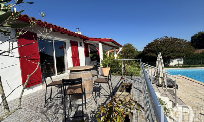 Dans une impasse au calme, en plein centre de Bidart, avec une mode de vie tout à pied, cette jolie maison contemporaine de plain pied de 213m3 a été pensée et décorée avec soin, elle s'articule comme suit : un très bel espace de vie de 65m2 très lumineux, avec cheminée et cuisine ouverte, une belle suite parentale avec dressing et salle de bain complète, deux chambres et une salle de bain, un vaste espace bureau, ainsi qu'un studio indépendant avec chambre et salle d'eau privative. Un espace salle de sport. L'ensemble de la maison est tournée sur les terrasses, le jardin et la piscine. Centre de Bidart et plage à pied.