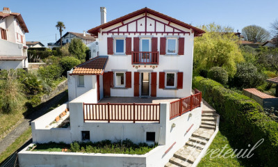 Idéalement située au coeur du village prisé de Guéthary, à l'abri des regards et dans un calme absolu, Sixième Avenue Anglet vous présente cette élégante villa Art Déco des années 1920 d'environ 230 m² habitables au sein d'un somptueux jardin arboré de 1 500 m² ? un véritable écrin de verdure, rare dans le secteur. Le rez-de-jardin offre une chambre avec salle de bain, dressing et toilettes séparés, ainsi que deux appartements indépendants (type T2) avec cuisine équipée et accès direct au jardin, idéals pour recevoir ou générer des revenus locatifs. Une cave à vin complète ce niveau. À l'étage, un vaste salon lumineux avec cheminée et une salle à manger conviviale s'ouvrent sur une grande terrasse exposée ouest avec vue partielle sur l'océan. La cuisine séparée, fonctionnelle et lumineuse, bénéficie elle aussi d'un accès à une terrasse extérieure. À l'extérieur, le jardin paysager abrite une piscine de 12x6 m avec pool house, un jacuzzi, ainsi qu'un espace bien-être comprenant une salle de sport équipée avec douche. Un garage fermé complète cet ensemble. Autre atout : la parcelle offre des possibilités d'extension, selon vos besoins et projets. Alliant charme intemporel et confort contemporain, cette villa unique réunit espace, intimité et prestations de qualité, à proximité immédiate des plages, commerces et commodités de Guéthary.