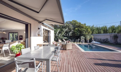 Implantée au cœur d'un environnement résidentiel prisé, cette villa de plain-pied de 180 m², édifiée en 2023 sur un terrain paysagé de 1 009 m², incarne une élégance contemporaine aboutie. Dès l'entrée, les volumes généreux et la lumière naturelle omniprésente révèlent une architecture aux lignes pures et maîtrisées. Alliance parfaite entre design et douceur de vivre, cette maison vous promet calme, confort et raffinement. La pièce de vie, sublimée par de larges baies vitrées, se prolonge naturellement vers l'extérieur. La terrasse et la piscine, parfaitement intégrées, composent un espace de détente intime, à l'abri des regards. Un cadre verdoyant, pensé comme un véritable art de vivre. La cuisine ouverte, entièrement équipée, conjugue esthétisme et fonctionnalité. Une arrière-cuisine discrète optimise le confort du quotidien. La suite parentale offre un espace privé raffiné avec dressing et salle de bains. Deux chambres supplémentaires accueillent famille et invités. Un bureau ouvert, aisément transformable en chambre avec salle d'eau, complète l'ensemble. Une salle d'eau indépendante renforce la fluidité des espaces. Buanderie et garage de 31 m² viennent parfaire les prestations. Climatisation intégrée, double vitrage et fibre optique assurent un confort absolu. À 10 minutes des plages et du golf international de Saint-Cyprien. Les informations sur les risques auxquels ce bien est exposé sont disponibles sur le site Géorisques :