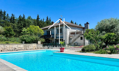 À seulement quelques minutes des spectaculaires Gorges de l'Ardèche et du Pont d'Arc, classé au patrimoine mondial de l'UNESCO, ce mas en pierre du XIV? siècle déploie son charme intemporel au coeur du village de Salavas, à proximité de la cité Renaissance de Barjac et des plus beaux sites naturels de la région. Un bien rare, empreint d'histoire et de caractère Rénové avec goût en 2018 tout en préservant l'âme des lieux, cet ancien mas de village offre près de 250 m² habitables et plus de 100 m² de combles aménageables. Un rez-de-chaussée entre volume et fonctionnalité L'entrée principale s'ouvre sur un vaste hall central, donnant accès à un salon de 60 m² baigné de lumière, sublimé par une imposante cheminée en pierre complété par une pièce intimiste qui peut faire office de bar ou bibliothèque. Cette espace permet une deuxième entrée indépendante réalisée récemment. En parallèle, une cuisine indépendante équipée de 20 m² forment un espace de vie convivial et généreux donnant sur une pièce lumineuse de plus de 30m² entièrement neuve. Une salle d'eau et toilettes aux normes PMR complète cet espace. Pour terminer le rez-de-chaussée, vous trouverez aussi une buanderie, et une cave qui complètent cet ensemble au confort absolu. Un sas d'entrée récent, plusieurs accès distincts et une configuration fluide permettent aisément d'y conjuguer vie privée et activité libérale ou touristique. Un étage conçu pour la sérénité L'escalier en pierre d'origine, majestueux, est équipé d'une plateforme ascenseur PMR, témoignant d'un soin constant porté à l'accessibilité et au confort. À ce niveau, se déploient quatre chambres spacieuses, dont 1 véritable double suite parentale - un bureau de 21m² et une chambre en enfilade) avec salles de bains privatives. 2 autres grandes chambres dont une restaurée, une salle d'eau neuve et un dressing complètent l'ensemble de cet étage. L'étage supérieur offre encore plus de 100 m² de potentiel d'aménagement — idéal pour créer un loft, un atelier d'artiste, ou des suites supplémentaires pour une activité d'accueil. Un art de vivre entre nature et patrimoine Implanté sur un terrain plat et arboré d'environ 5 000 m² non constructible, le mas profite d'un environnement paisible et verdoyant, sans vis-à-vis. Une vaste terrasse de 110 m², une cour intérieure ombragée, et une belle piscine à l'abri des regards invitent à la détente et aux réceptions. Un puit et deux cuves de récupération d'eau démontrent une gestion intelligente des ressources, tandis que la toiture, entièrement refaite en 2017, assure une tranquillité durable. Les amateurs d'équitation apprécieront également la présence de deux box à chevaux et d'un abri indépendant, qui peut être converti en salle de réception ou en dépendance. Un emplacement privilégié, entre culture et nature À deux pas des commerces, écoles, restaurants et services du village, cette propriété conjugue qualité de vie, attractivité touristique et valeur patrimoniale sûre. Les Gorges de l'Ardèche, la Grotte Chauvet 2, les marchés de producteurs, les festivals et les activités de plein air (canoë, randonnée, VTT, escalade) sont à portée immédiate. Informations clés Surface habitable : environs 250 m² (plus de 100 m² aménageables) Terrain : environ 5 000 m² plat et arboré Piscine, puits, récupération d'eaux pluviales Toiture rénovée en 2017 DPE : C – GES : C Prix : 629 000 euros FAI (honora..