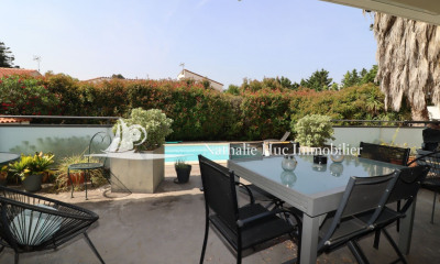 66440 Torreilles village , Exclusivité, havre de paix pour cette belle maison de plain-pied 4 faces, composée d'une entrée, salon avec cheminée insert, coin repas, cuisine ouverte équipée, salle de bains, 3 chambres avec placard, une dépendance avec une chambre 10 m², une buanderie 5 m², garage 25 m². Une cuisine d'été très agréable. Parkings, terrasse, forage, piscine - jacuzzi et jardin. Proche du village au calme sans vis à vis.