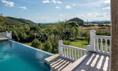 ENTRE AUBENAS et MONTELIMAR, en bordure du village de VILLENEUVE DE BERG. Eva BENOIT de l'Agence COMPTOIR IMMOBILIER de France « ARDECHE » vous propose cette grande Propriété de près de 400 m2 habitables sur une belle parcelle de terrain arboré et clos de 4.065 m2. Ce domaine propose une habitation privée et deux gîtes mitoyens, répartis en deux belles bâtisses en pierre de pays, organisées en deux et trois niveaux d'habitation, et pouvant accueillir jusqu'à 24 personnes. Le parc arboré et ensoleillé est doté d'une vue panoramique sur les massifs du Coiron et du Tanargue. Il propose deux piscines hors-sols, des espaces de jeux extérieurs, des terrasses ombragées sans aucun vis-à-vis ainsi qu'une dizaine de places de parking. Le tout à 30 minutes de MONTELIMAR et 20 minutes d'AUBENAS, proche de nombreuses activités touristiques au coeur d'un espace naturel riche et varié. Un projet idéal pour une grande famille qui recherche une résidence secondaire à plusieurs, pour des gîtes, ou simplement pour une résidence principale luxueuse et spacieuse. La répartition des espaces de vie se fait comme suit : Le premier gîte se compose au rez-de-chaussée d'un hall d'accueil avec un poêle à bois, d'une salle d'eau avec WC, d'un grand salon avec un poêle à bois également, d'une cuisine équipée, d'une belle suite parentale avec salle d'eau et WC, ainsi que d'une terrasse ombragée au calme. A l'étage on retrouve 2 chambres avec chacune sa salle d'eau WC, ainsi qu'un coin bibliothèque pour se détendre. Au 3e niveau on retrouve un grand salon, deux chambres, une salle d'eau avec WC ainsi qu'un espace commun de travail. Le tout sur une superficie habitable de plus de 250 m2 ! Le deuxième gîte propose au rez-de-chaussée un vaste séjour qui s'ouvre sur une cuisine américaine tout équipée ; une salle de bain à l'italienne avec un WC séparé, un coin jeux, une petite bibliothèque, une mezzanine et une terrasse. Le premier étage se compose lui de deux chambres ainsi que d'un WC. Le tout sur une superficie habitable d'environ 75 m2. Enfin, la troisième partie habitable privée se compose d'une superbe terrasse couverte avec une vue panoramique sur le Coiron. Une loggia prône dans cet espace paisible, ainsi qu'une pièce de vie très lumineuse proposant un salon salle à manger cuisine ouverte tout équipée. L'habitation est aussi composée de deux chambres dont une belle suite parentale avec salle d'eau et WC. Les différents gîtes offrent un type de chauffage mixte alliant poêle à bois, climatisation et radiateurs. Un chauffe-eau thermodynamique de dernière génération est installé dans le troisième gîtes. Un système de filtration est également utilisé pour l'eau courante. Le domaine possède deux piscines hors-sols, de plus la toiture a été refaite récemment, ainsi que toute l'électricité, avec 20 panneaux solaire installés sur le toit. Un bien rare avec beaucoup de charme et un fort potentiel. Une qualité d'équipement et d'architecture indéniable. Ce domaine vous offrira rapidement une certaine rentabilité pour un projet de location. Vous n'avez plus qu'à venir y poser vos valises et profiter de la douceur des beaux paysages ardéchois ! Possibilité d'acquérir en plus une parcelle supplémentaire de 740 m2 constructible, attenante au fond du domaine, pour le prix de 100.000 EUR H.A.I !! Une très belle opportunité pour votre prochaine résidence principale ou secondaire, un prix de 790.000 EUR H.A.I., à découvrir et à visiter, avec Eva BENOIT, votre Conseillère en Immobilier C.I.F de l'Agence COMPTOIR IMMOBILIER de France « ARDECHE ». Honoraires charge acquéreur ; Prix moyens des énergies indexés au 01/01/2021 (abonnement compris). Montant estimé des dépenses annuelles d'énergie pour un usage standard : entre 6.140 EUR et 8.350 EUR par an. Cette ann Les informations sur les risques auxquels ce bien est exposé sont disponibles sur le site Géorisques : COMPTOIR IMMOBILIER DE FRANCE - Plus d'informations - « Les informations sur les risques auxquels ce bien est exposé sont disponibles sur le site Géorisques : »